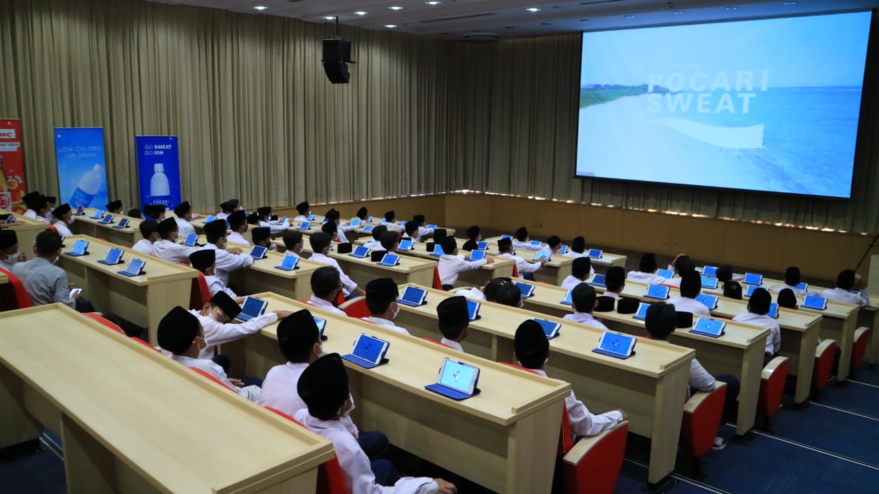 Kegiatan Outing Class Santri PTQM Hasmi di PT Amerta Indah Otsuka. Dalam kegiatan ini para santri berkesempatan belajar langsung yang dipandu oleh para instruktur untuk mengikuti rangkaian kegiatan yang bervariatif mulai dari pengetahuan dasar tentang produk-produk dari PT Otsuka, games, dan lain-lain.